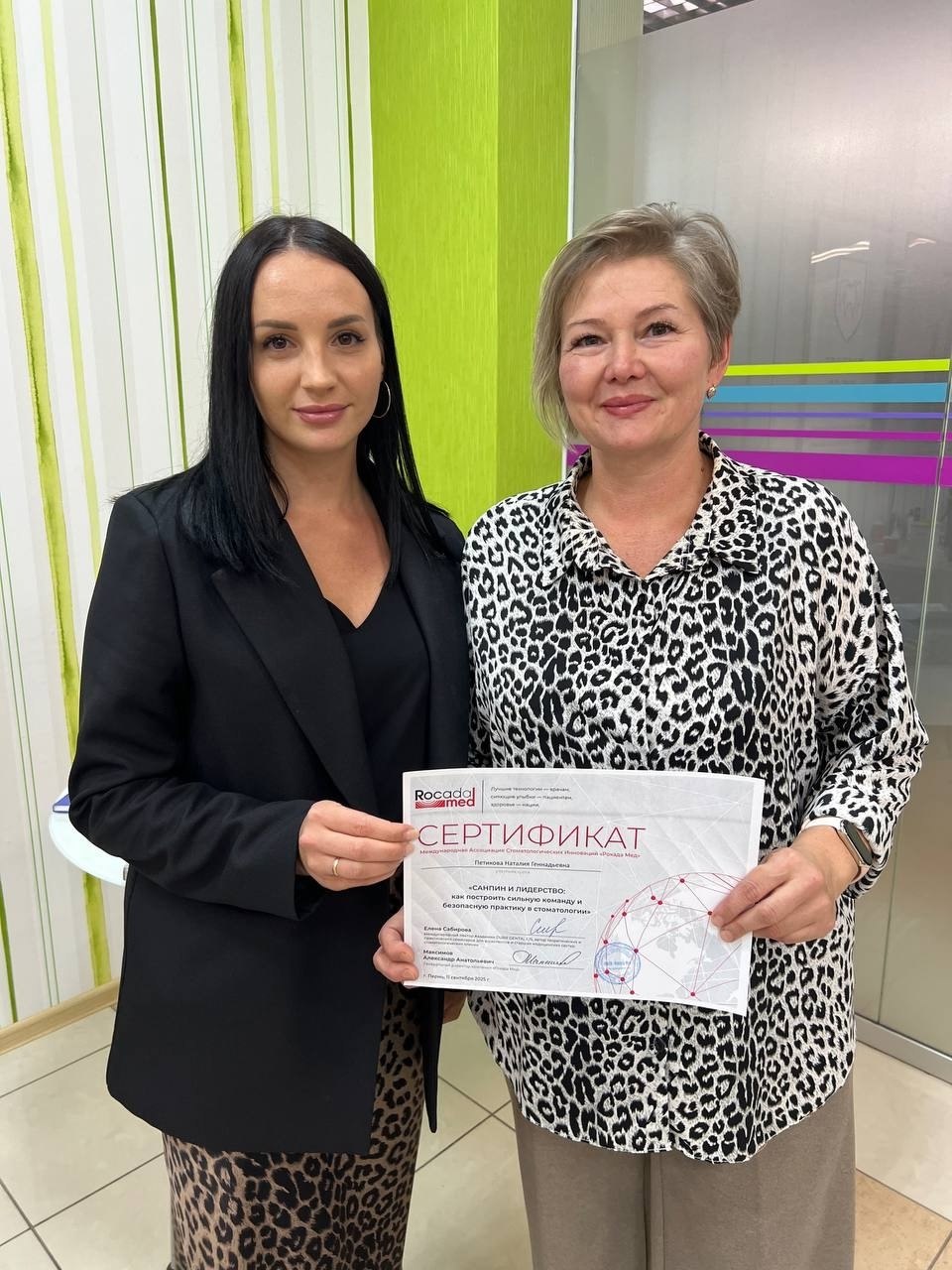 На прошлой неделе старшая медсестра нашей клиники Петикова Наталия Геннадьевна приняла участие в интенсивном курсе "САНПИН и Лидерство", который проводился в учебном пространстве Стоматолорики компанией Rocada.